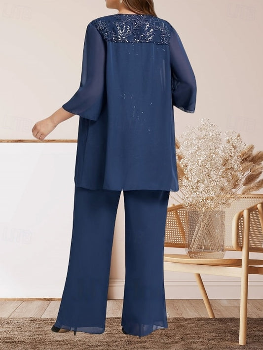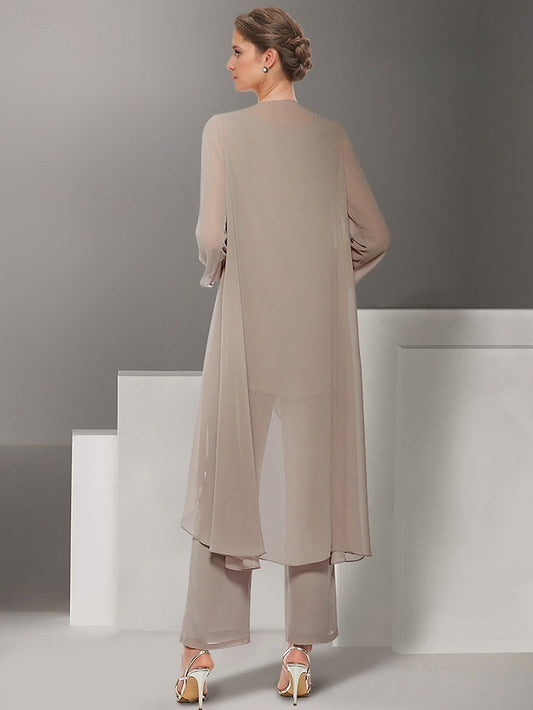Mother Pantsuit Bride Elegant Crew Piece of Dress 3 Neck the