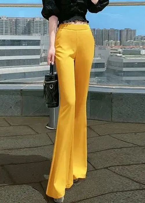 Flare Red Pockets Cotton Bottoms Fall Elastic Slim Waist Fit