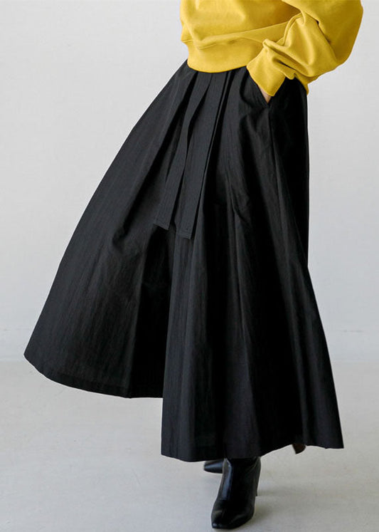 Jupe pantalon simple en lin noir à ouverture latérale pour l'été TZ029