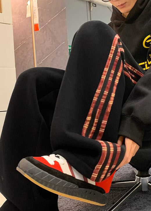 Pantalon homme en polaire chaude à rayures noires avec poches et taille élastique, printemps RM060