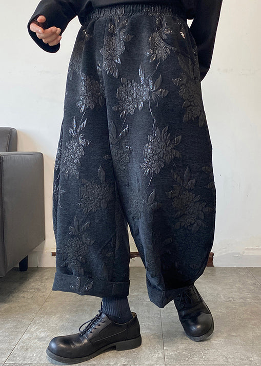 Pantalon ample gris foncé à poches brodées en coton pour homme, coupe large, printemps RM052
