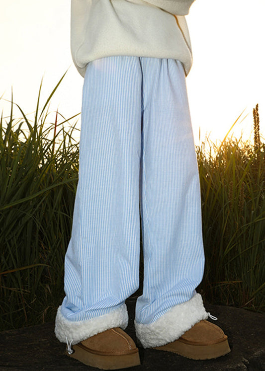 Pantalon d'hiver moderne bleu à lacets et taille élastique en polaire chaude pour homme RM046
