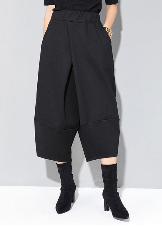 Pantalon large drapé taille haute patchwork noir élégant, printemps RZ002