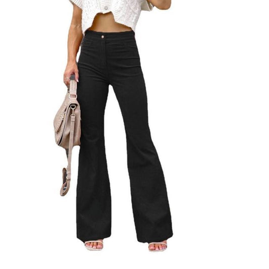 Pantalon évasé taille haute en velours côtelé uni CG15