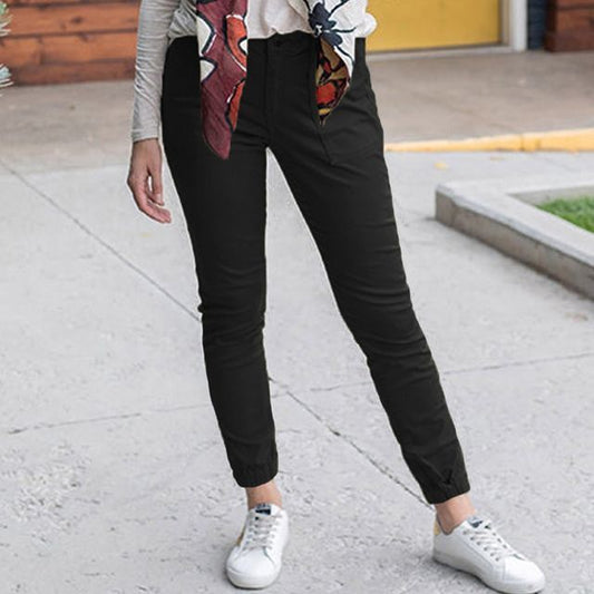 Pantalon fuselé court uni avec cordon de serrage à la taille YR4054