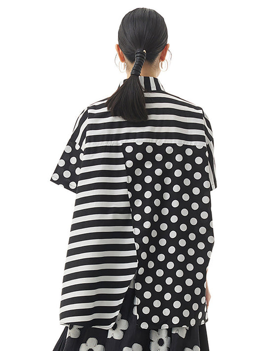 Chemise ample irrégulière à rayures et pois en coton pour femmes de grande taille AA1022