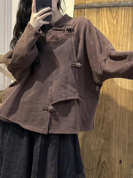Chemisier boutonné uni artistique pour femmes de grande taille 100 % ramie PA1040
