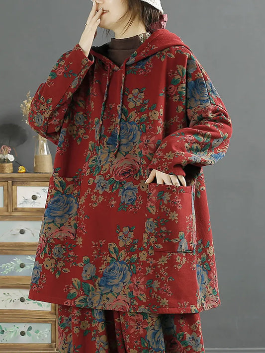 Pantalon ample en jacquard fleuri vintage pour femme grande taille KL1019