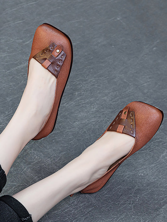 Chaussures plates souples en cuir à blocs de couleurs ethniques pour femmes KL1025