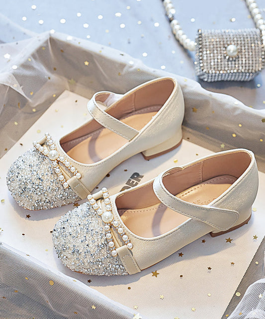 Sandales Zircon Blanc Élégantes Bride Perle Boucle Enfant