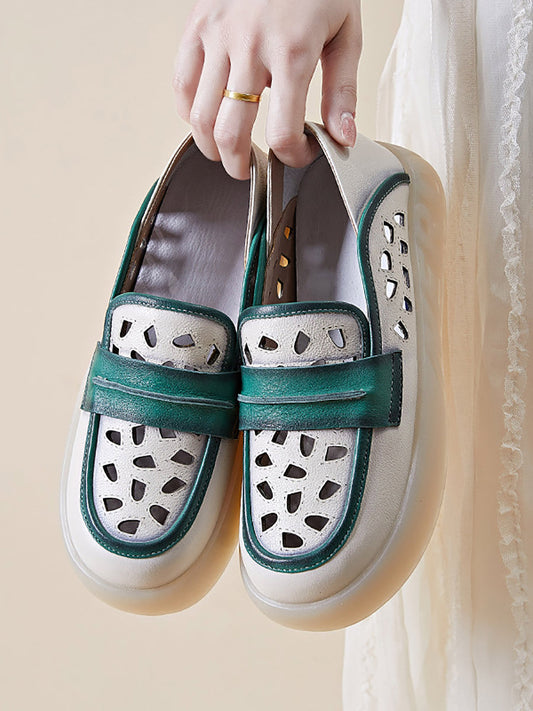 Chaussures plates souples découpées en cuir vintage d'été pour femmes ZZ1002
