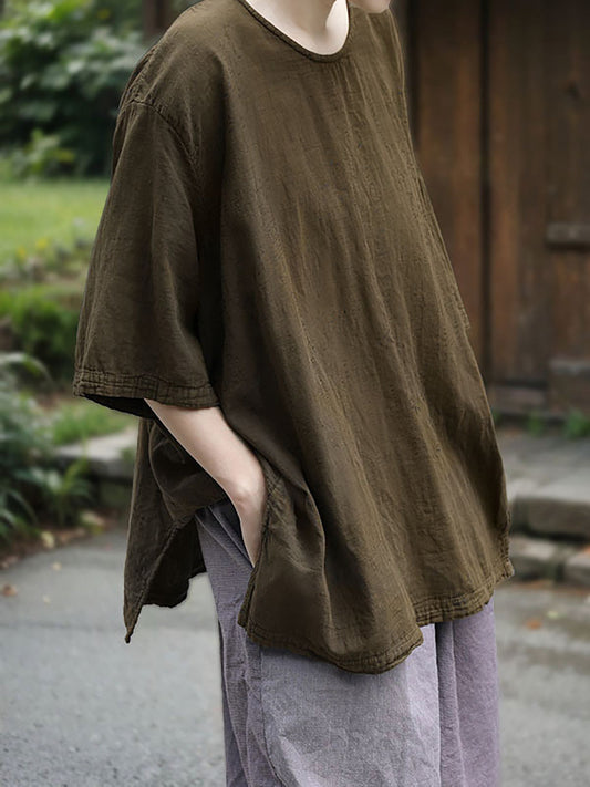 Chemise d'été décontractée 100 % coton à col rond pour femme, couleur pure