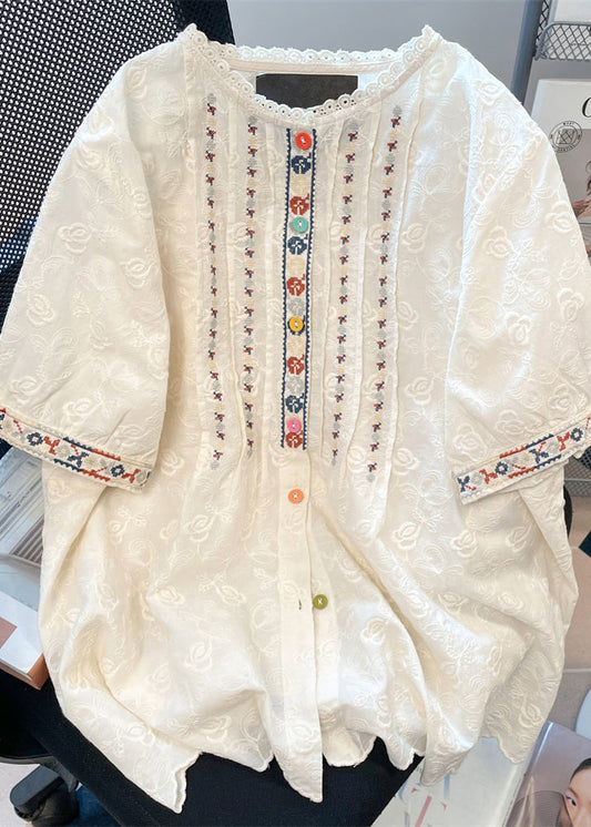 Chemises blanches amples pour femmes, dentelle brodée, été
