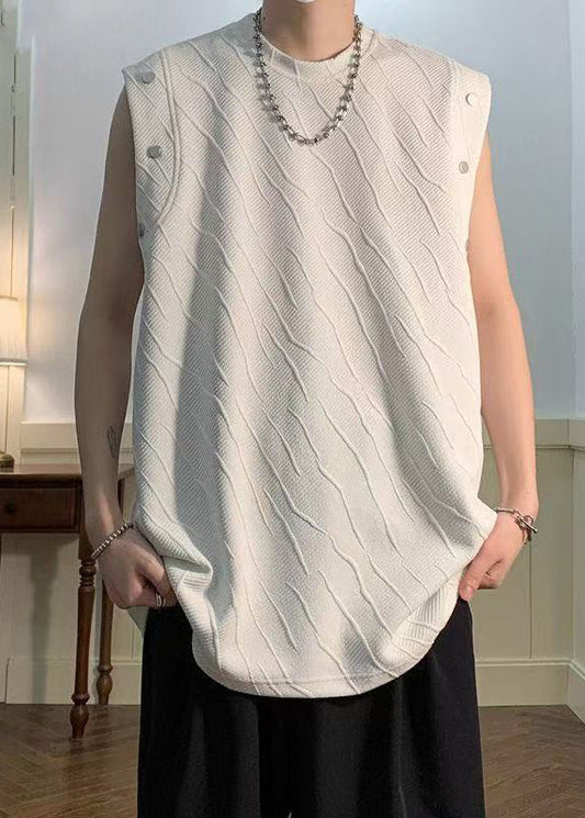 Débardeur d'été en coton blanc pour homme avec col imprimé