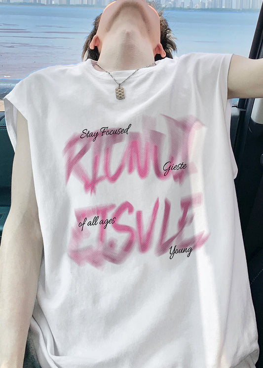 Débardeurs Homme Cool Coton Col Noir Été Imprimé Surdimensionné O