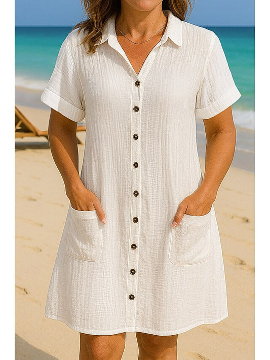 Women's Mini Dress Faux Cotton Linen White Dress Casual