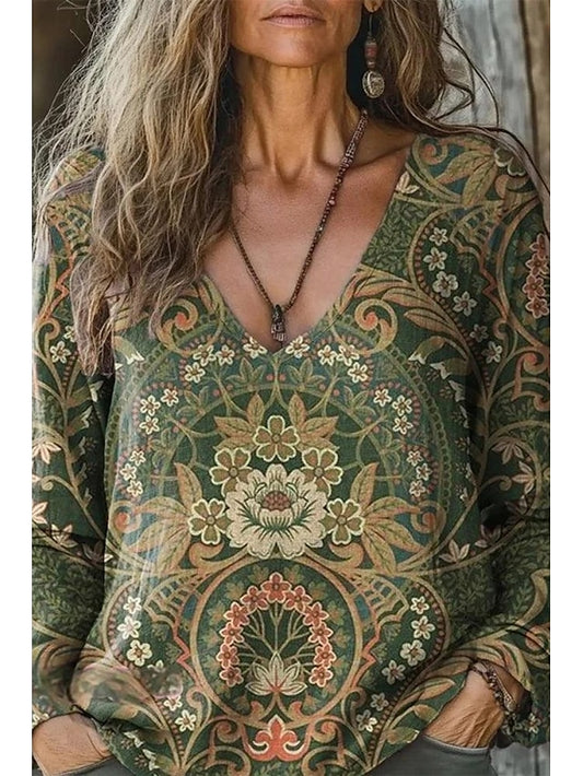 Women's Cotton Blend T Shirt Floral Fashion Casual Long