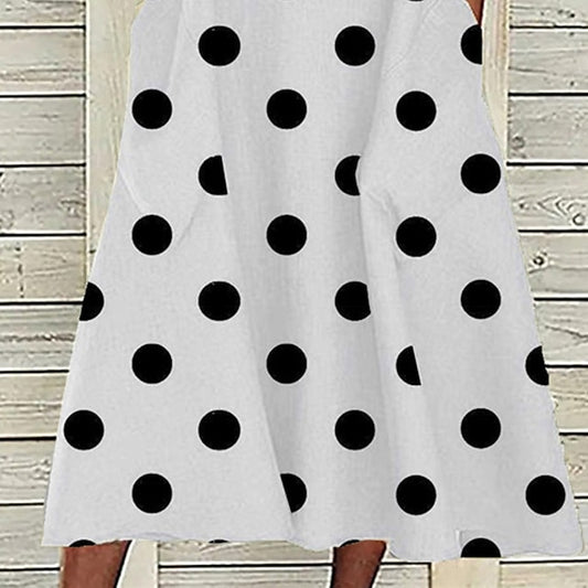 Polka Dot Midi Dress for Women - Casual V Neck Dress with Pockets