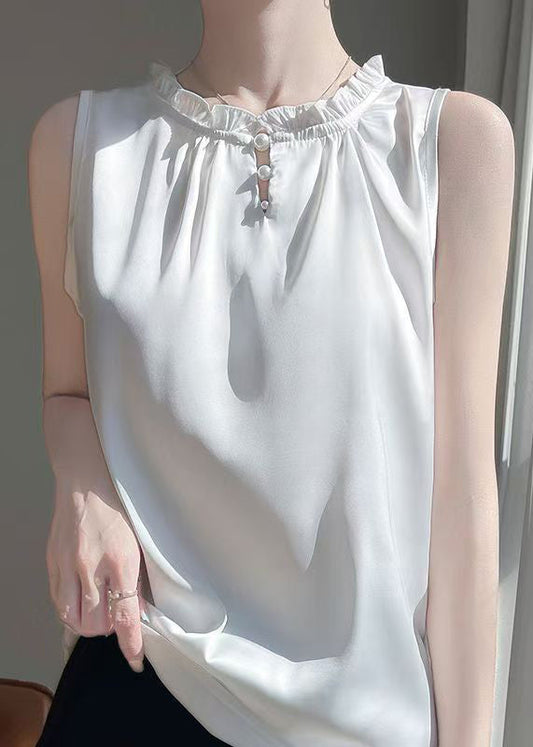 Sleeveless Silk White Boutique Button Ruffled Shirts