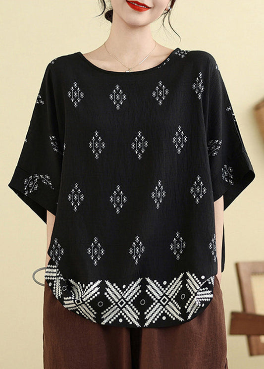 Style New Linen Retro Tops Summer Chinese Apricot Print