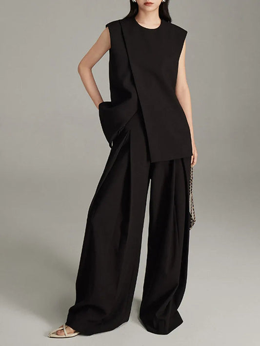 Tunique moderne sans manches fendue avec ourlet et col rond, couleur crème