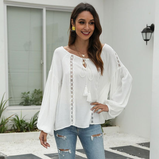 Tunique à manches longues en mélange de coton pour femmes ap23