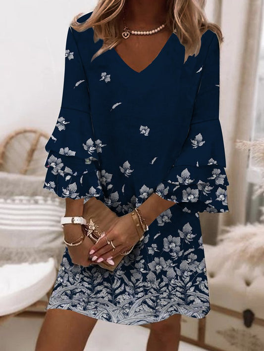 Robe tunique tissée romantique à manches courtes et col en V EE14