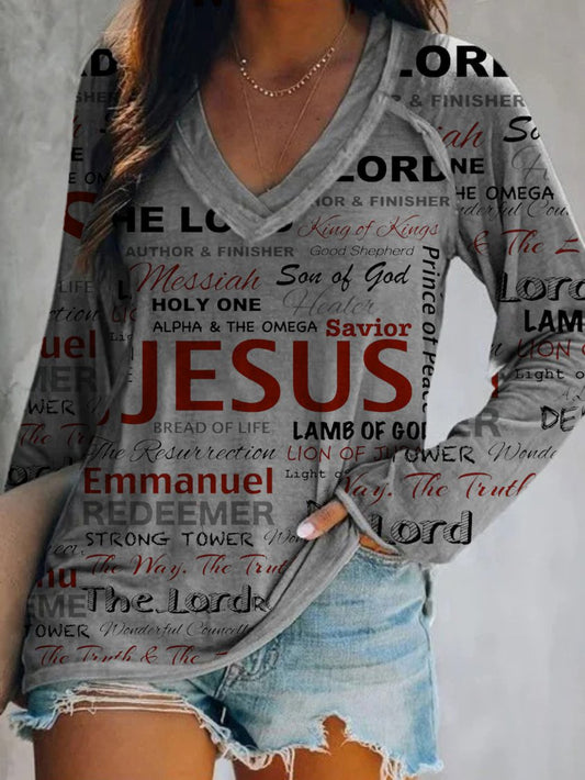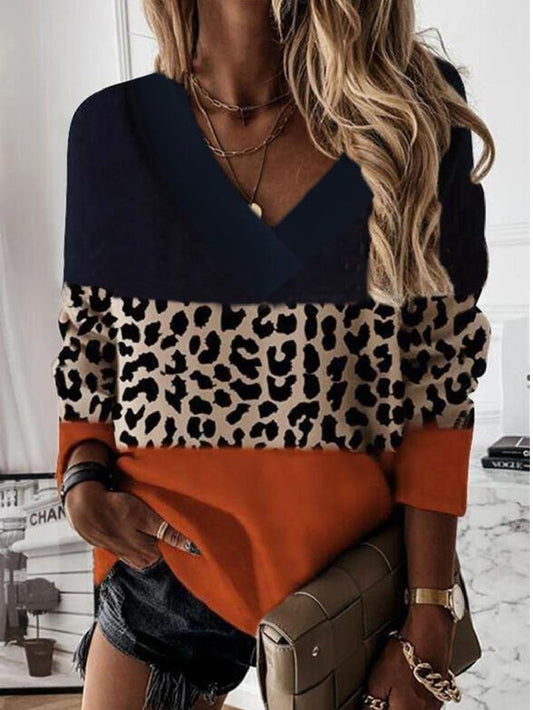 Tunique décontractée à manches longues et col en V avec imprimé AH726