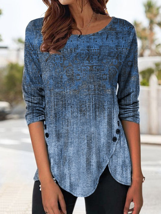 Tunique décontractée à manches longues et à encoches ethniques MMq33