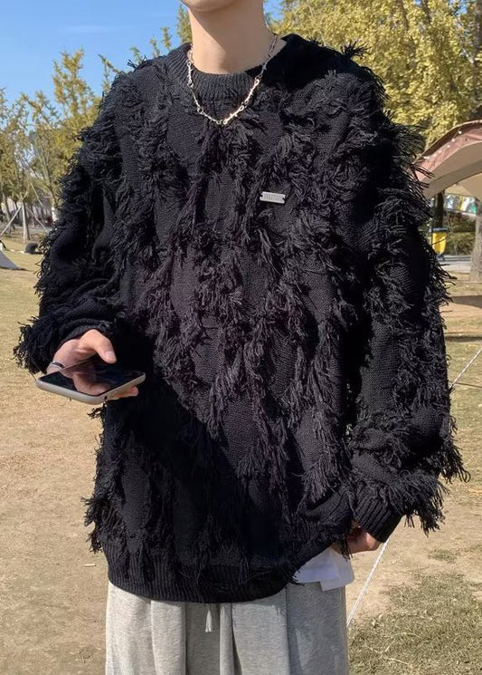 Nouveau pull en tricot solide à pompons abricot pour homme automne QH018