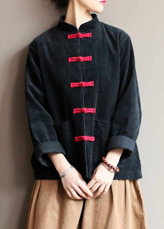 Nouveau manteau en lin à boutons orientaux vert noirâtre de style chinois automne QK021