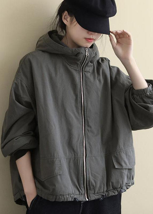 Manteau d'hiver en coton à capuche gris de luxe avec cordon de serrage et manches longues QS045