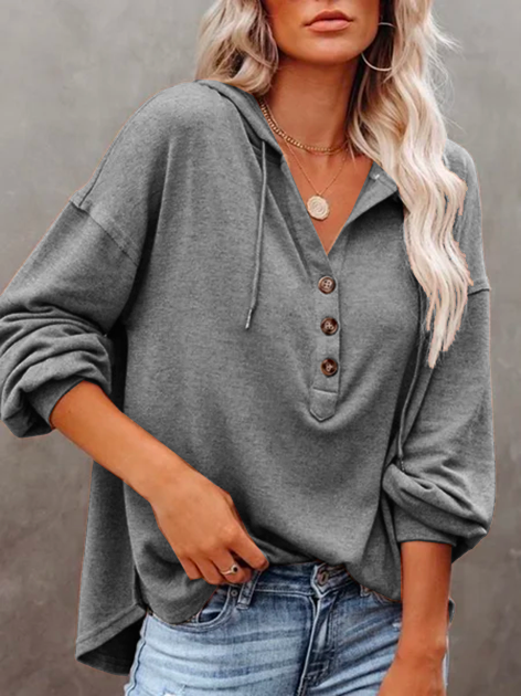 Sweat-shirt tunique décontracté à manches longues et col en V QAL4
