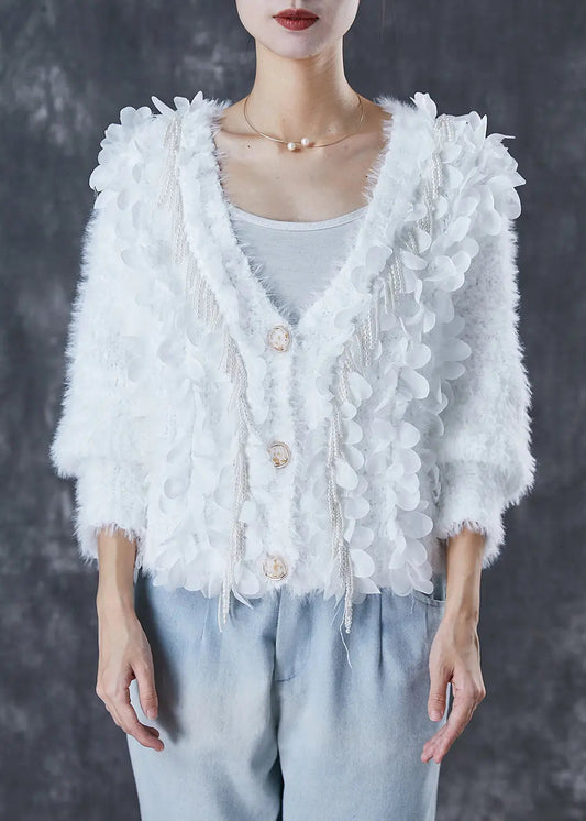 Cardigan à manches courtes et volants en dentelle florale QL119