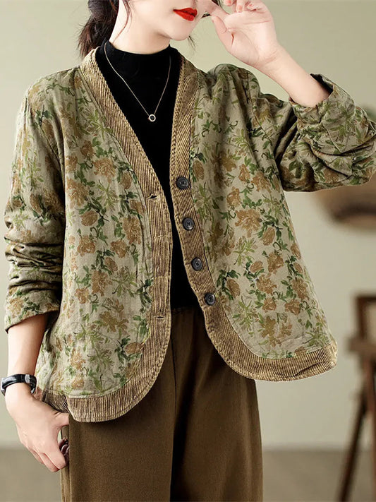 Manteau en tricot de coton confortable à manches longues et col rond avec boutons floraux rouges AB1004