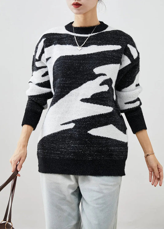 Magnifique pull en tricot jacquard à col rond rose en fausse fourrure pour l'automne WO025
