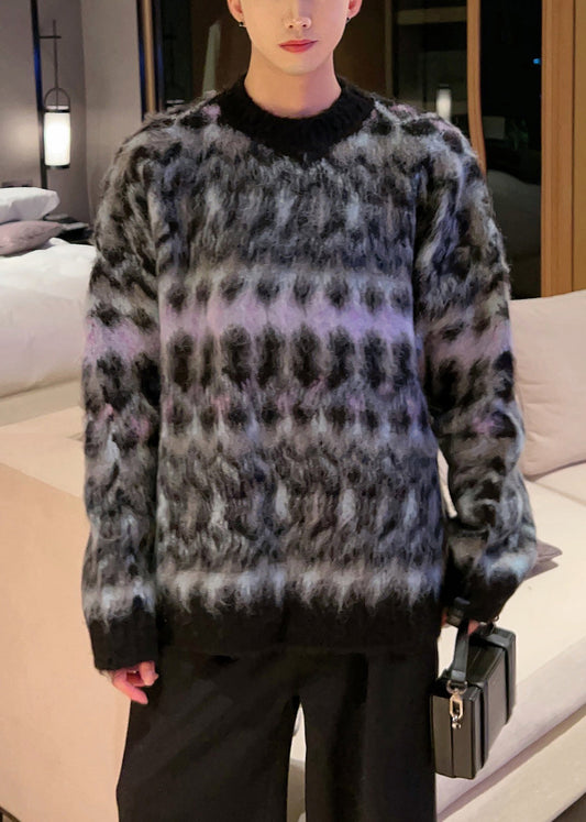 Pull en coton patchwork noir confortable pour homme, col rond, automne QH035