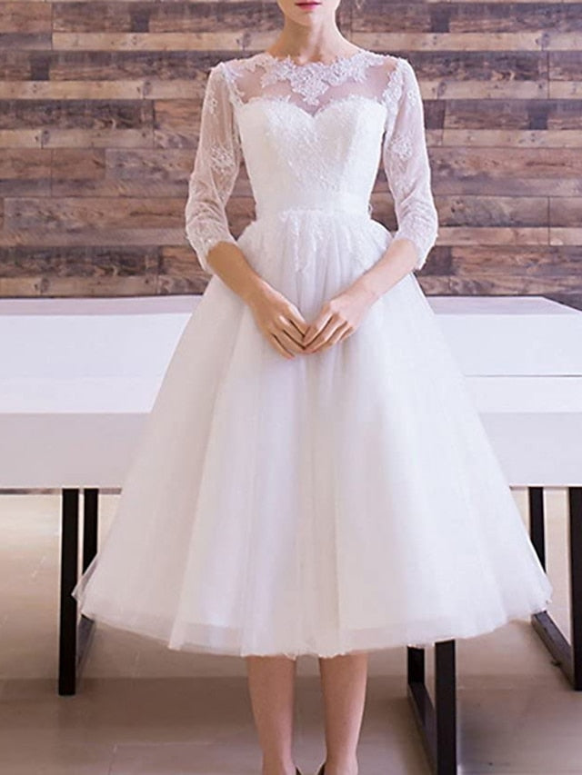 A-Line Tea Length Wedding Dresses Bridal Shower Dresses Bridal
