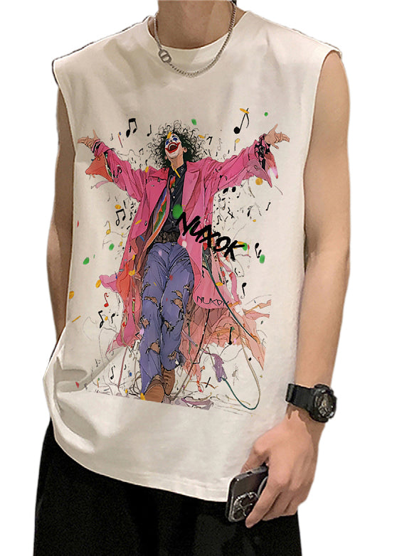 Débardeur sans manches en coton noir à col rond et imprimé pour homme