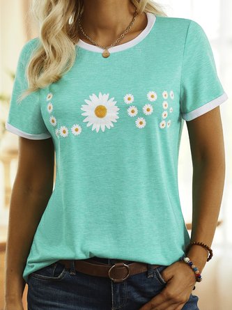 T-shirt imprimé à manches courtes décontracté vert QAW33