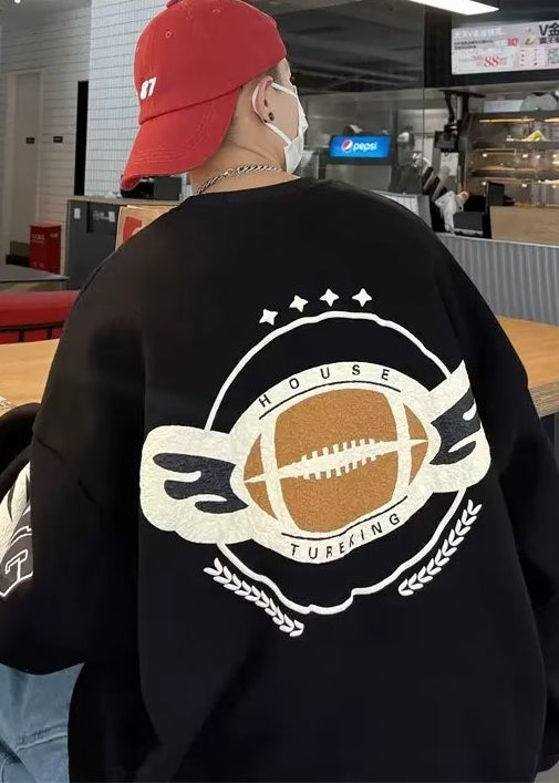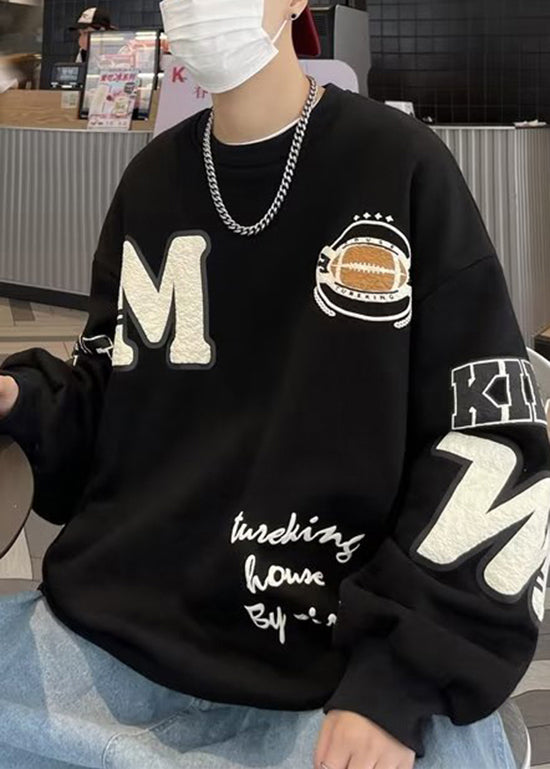 Sweat-shirt ample kaki chic à col rond et patchwork en polaire chaude pour homme, collection hiver EQ017