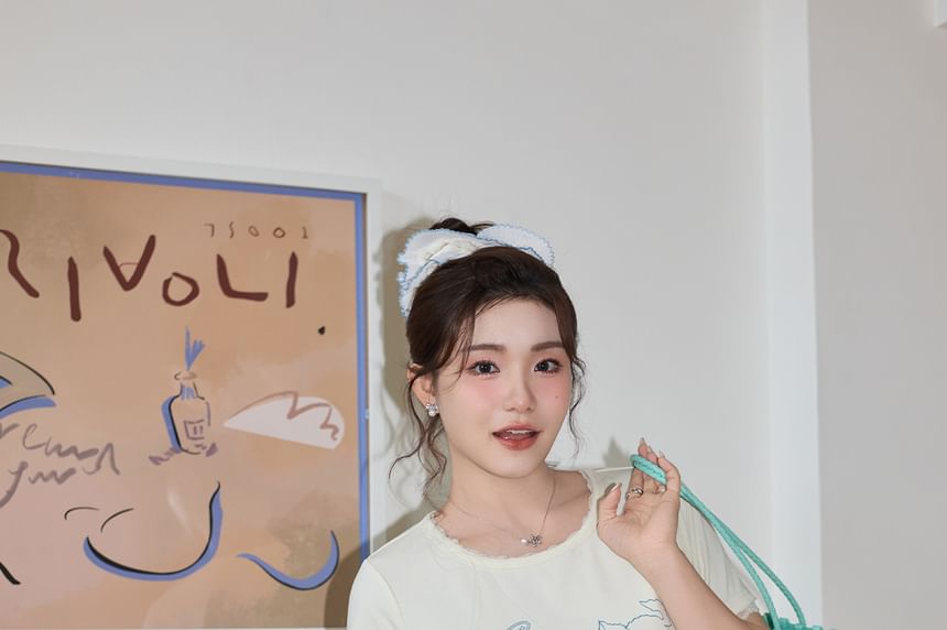 Plus Size Short-Sleeve Round Neck Cat Print T-Shirt