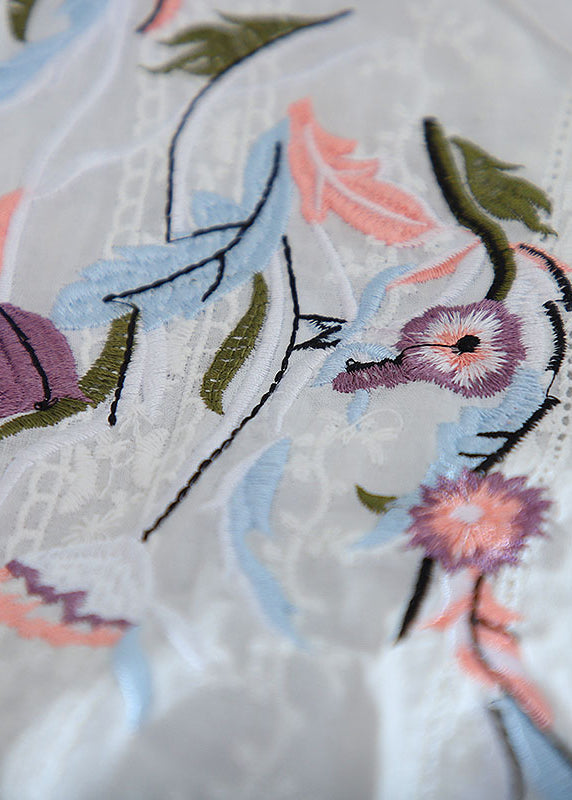 Notre chemise brodée à col en V blanche simple au design exquis présente un design bas-haut sophistiqué et exclusif, élégamment orné d'une délicate manche de bracelet.