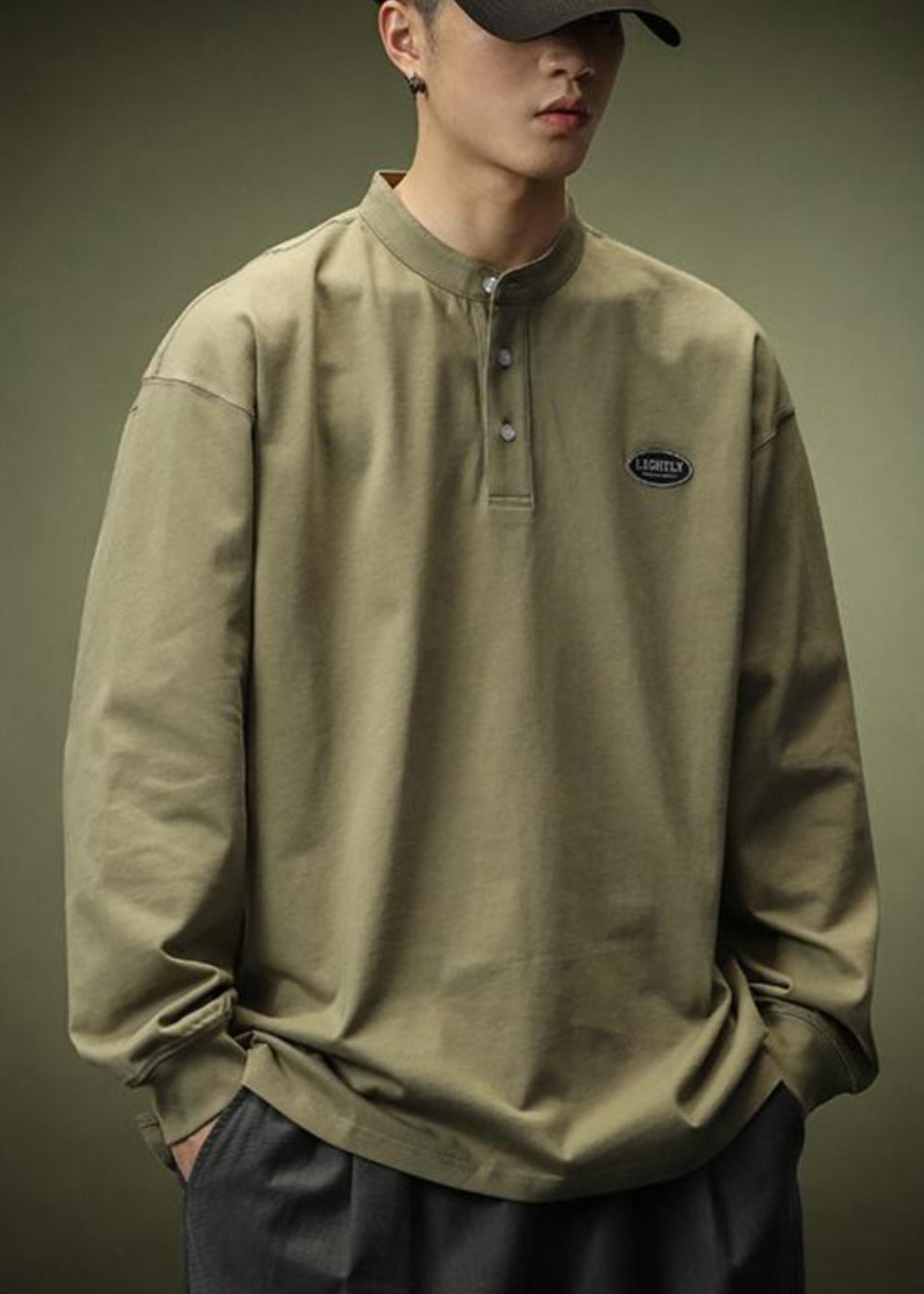 T-shirt simple en coton uni à boutons noirs pour homme, printemps