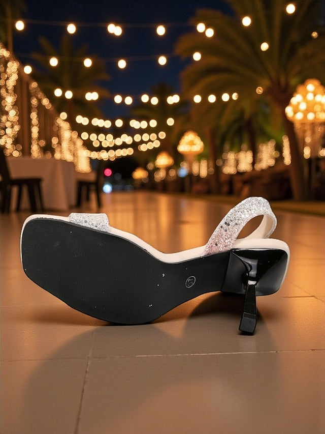 Stiletto Women's Slingback - Square Sandals Glitter Toe