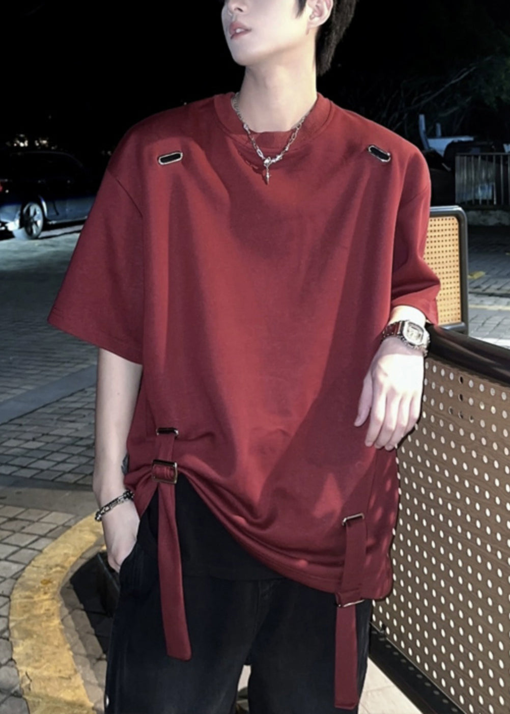 T-shirt d'été en coton uni pour homme, design original, rouge vin français