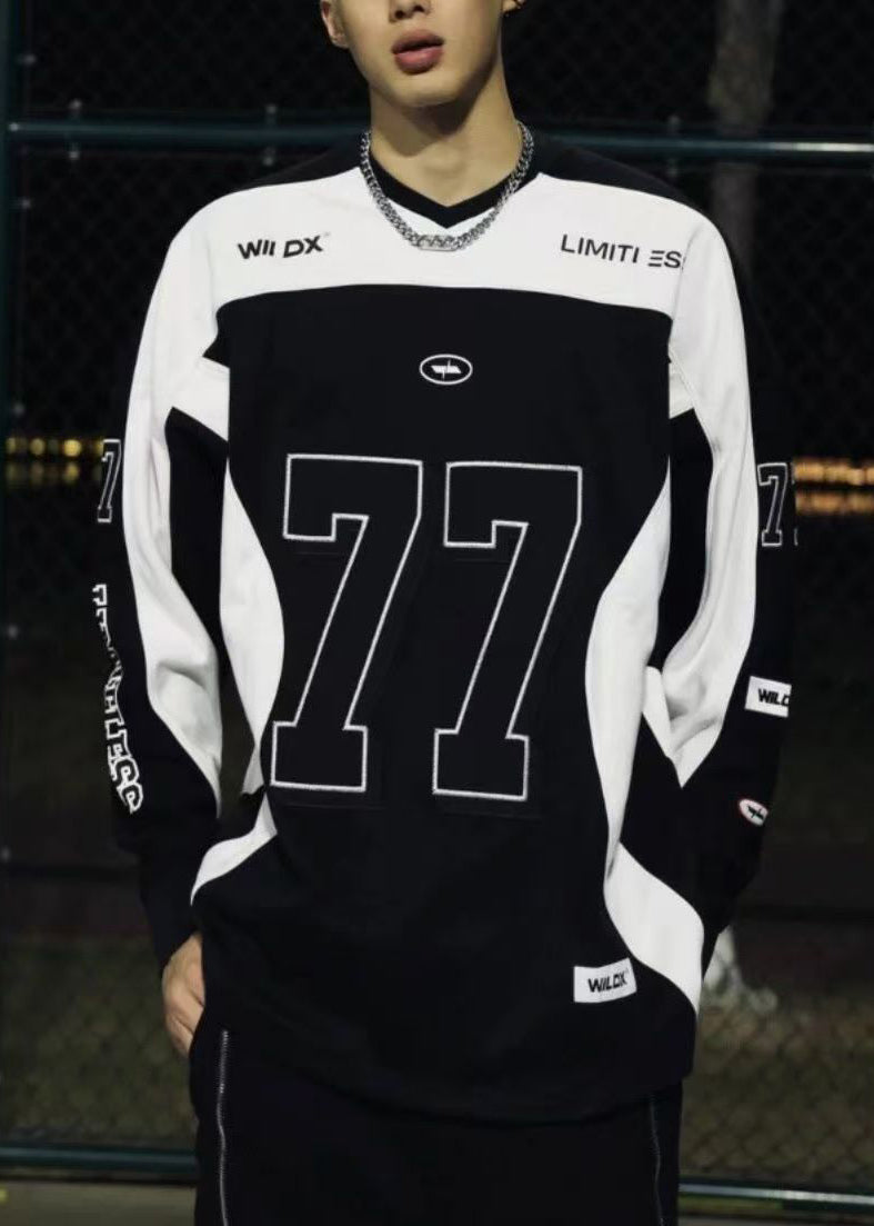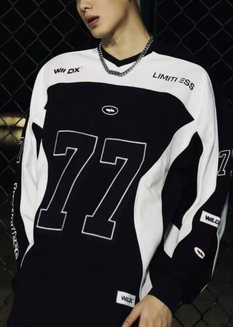 T-shirt noir col V en coton imprimé patchwork pour homme, printemps