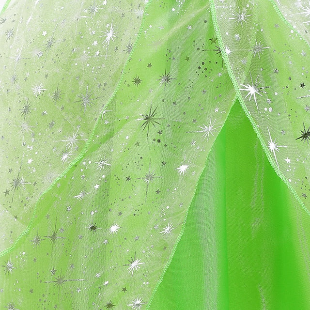 Gender: Girls', Material: Organza, Style: Cosplay, Cosplay Works: Tinker Bell, Types: Flower Girl Dress, Theme Party Costume, Tulle Dresses, Characters: Tiana, Princess, Fairytale, Holiday: Carnival, Masquerade, Look After Me: Washable, Wet and Dry Cleaning, Machine wash, Age Group: Kid's, Occasion: Wedding Guest, Wedding, Clothing Length (cm): 39.3inch(100cm):75;110cm:80;120cm:85;130cm:90;140cm:95;150cm:100, What's in the box: Dress,