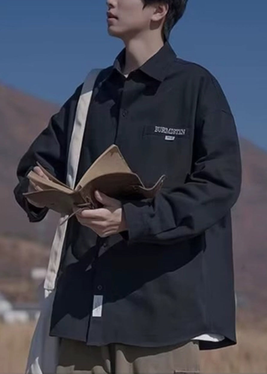 Manteau fin en coton noir à col Peter Pan pour homme, grande taille, avec poches, pour le printemps