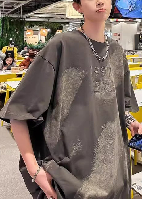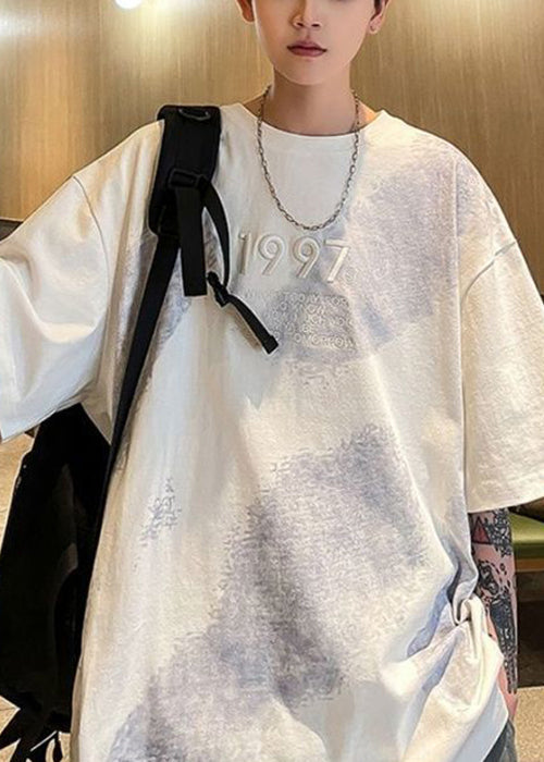 T-shirt manches courtes homme blanc brodé tie-dye en coton grande taille